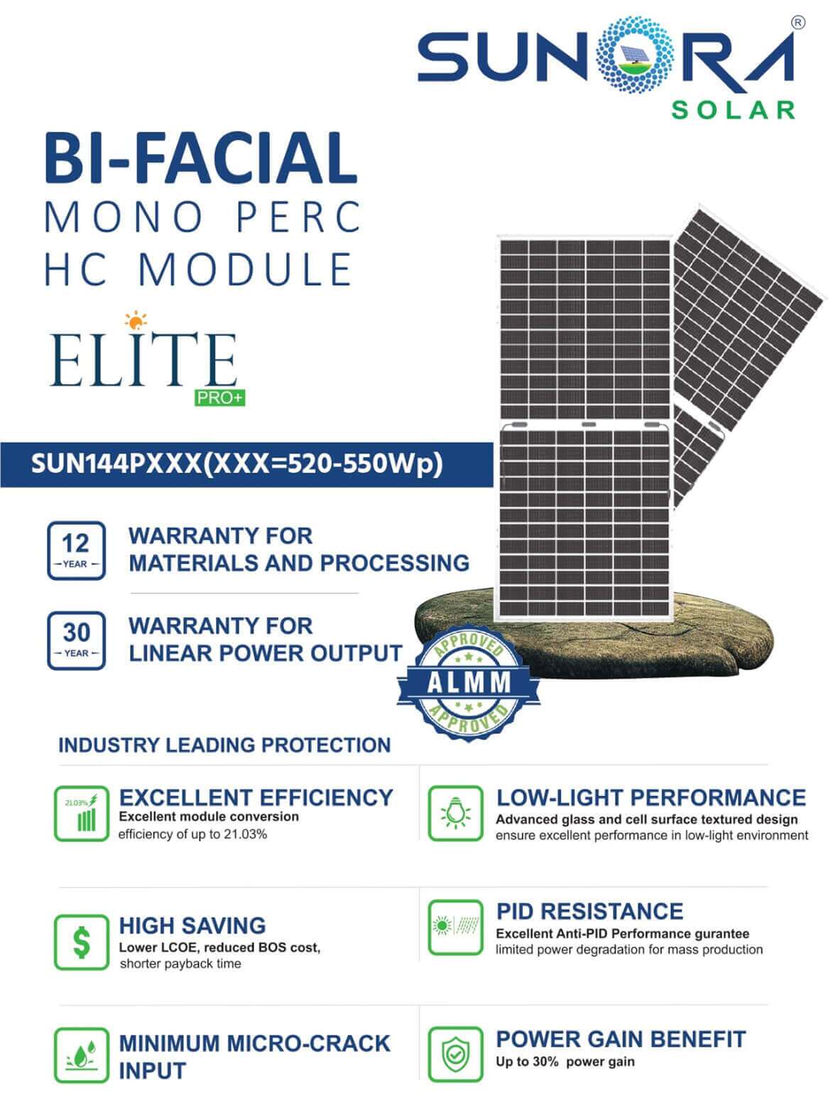 Sunora 550Wp 144Cells Monocrystalline Bifacial Module
